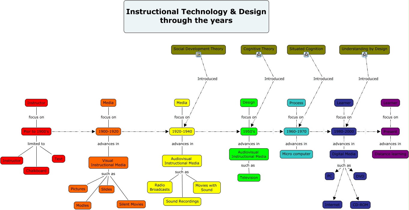 This Concept Map, created with IHMC CmapTools, has information related to: Group 3_501Summer12_Final CMAP, 1950's advances in Audiovisual Instructional Media, Pior to 1900's focus on Instructor, Pior to 1900's limited to Instructor, Digital Media such as PC, 1900-1920 1920-1940, 1960-1970 focus on Process, Audiovisual Instructional Media such as Radio Broadcasts, Visual Instructional Media such as Silent Movies, 1960-1970 1980-2000, Visual Instructional Media such as Modles, Present focus on Learner, 1960-1970 advances in Micro computer, 1920-1940 focus on Media, 1950's 1960-1970, 1900-1920 focus on Media, 1980-2000 focus on Learner, Pior to 1900's limited to Chalkboard, Audiovisual Instructional Media such as Television, Digital Media such as CD-ROM, Pior to 1900's limited to Text