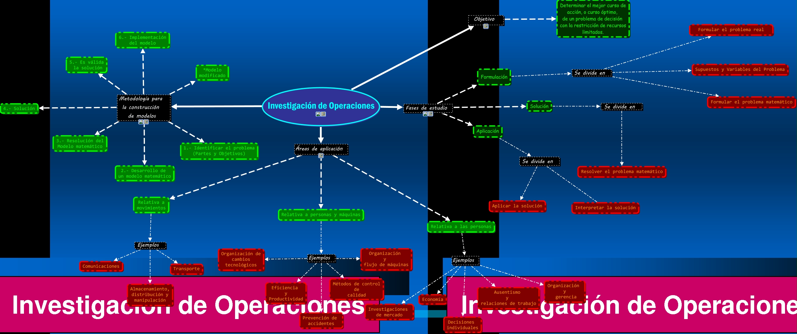 Este Cmap, tiene información relacionada con: Investigación de Operaciones.cmap, Investigación de Operaciones Áreas de aplicación Relativa a movimientos, Formulación Se divide en Formular el problema real, Relativa a personas y máquinas Ejemplos Organización y flujo de máquinas, Aplicación Se divide en Interpretar la solución, Formulación Se divide en Supuestos y Variables del Problema, Investigación de Operaciones Fases de estudio Aplicación, Investigación de Operaciones Áreas de aplicación Relativa a las personas, Relativa a movimientos Ejemplos Transporte, Investigación de Operaciones Áreas de aplicación Relativa a personas y máquinas, Investigación de Operaciones Objetivo Determinar el mejor curso de acción, o curso óptimo, de un problema de decisión con la restricción de recursos limitados., Investigación de Operaciones Fases de estudio Solución, Investigación de Operaciones Metodología para la construcción de modelos 5.- Es válida la solución, Solución Se divide en Resolver el problema matemático, Relativa a personas y máquinas Ejemplos Prevención de accidentes, Formulación Se divide en Formular el problema matemático, Relativa a personas y máquinas Ejemplos Organización de cambios tecnológicos, Relativa a las personas Ejemplos Economía, Investigación de Operaciones Metodología para la construcción de modelos 2.- Desarrollo de un modelo matemático, Investigación de Operaciones Fases de estudio Formulación, Relativa a movimientos Ejemplos Comunicaciones