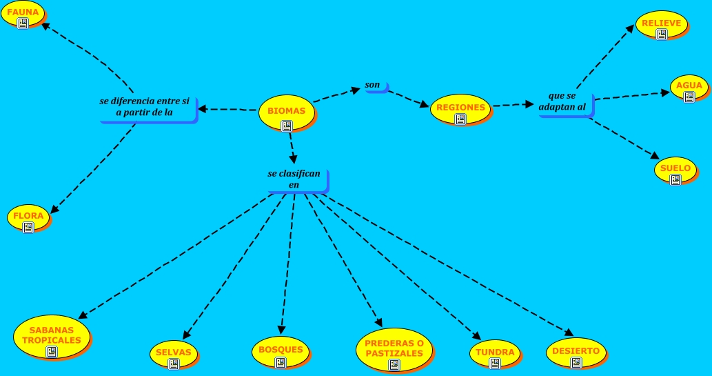 Este Cmap, tiene información relacionada con: biomas, BIOMAS se clasifican en SELVAS, BIOMAS se clasifican en PREDERAS O PASTIZALES, BIOMAS se diferencia entre si a partir de la FAUNA, BIOMAS se clasifican en SABANAS TROPICALES, BIOMAS se clasifican en DESIERTO, BIOMAS se clasifican en BOSQUES, BIOMAS se clasifican en TUNDRA, REGIONES que se adaptan al SUELO, REGIONES que se adaptan al AGUA, REGIONES que se adaptan al RELIEVE, BIOMAS se diferencia entre si a partir de la FLORA, BIOMAS son REGIONES