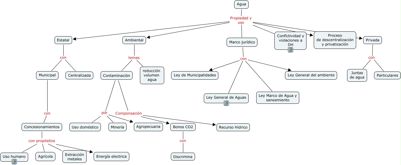Este Cmap, tiene información relacionada con: Agua investigación DHA, Ambiental temas Contaminación, Ambiental temas reducción volumen agua, Marco jurídico con Ley General del ambiente, Estatal con Municipal, Contaminación por Agropecuaria, Agua Propiedad y uso Ambiental, Concesionamientos con propósitos Uso humano, Contaminación por Minería, Contaminación Compensación Bonos CO2, Marco jurídico con Ley de Municipalidades, Privada con Juntas de agua, Concesionamientos con propósitos Agrícola, Privada con Particulares, Concesionamientos con propósitos Extracción metales, Marco jurídico con Ley General de Aguas, Contaminación por Uso doméstico, Municipal con Concesionamientos, Agua Propiedad y uso Proceso de descentralización y privatización, Agua Propiedad y uso Privada, Agua Propiedad y uso Conflctividad y violaciones a DH