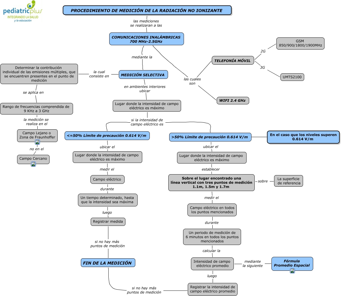 Este Cmap, tiene información relacionada con: MEDICIÓN, MEDICIÓN SELECTIVA en ambientes interiores ubicar Lugar donde la intensidad de campo eléctrico es máximo, Intensidad de campo eléctrico promedio mediante la siguiente Fórmula Promedio Espacial, Registrar la intensidad de campo eléctrico promedio si no hay más puntos de medición FIN DE LA MEDICIÓN, Campo eléctrico durante Un tiempo determinado, hasta que la intensidad sea máxima, COMUNICACIONES INALÁMBRICAS 700 MHz-2.5GHz mediante la MEDICIÓN SELECTIVA, PROCEDIMIENTO DE MEDICIÓN DE LA RADIACIÓN NO IONIZANTE las mediciones se realizaran a las COMUNICACIONES INALÁMBRICAS 700 MHz-2.5GHz, Registrar medida si no hay más puntos de medición FIN DE LA MEDICIÓN, Intensidad de campo eléctrico promedio luego Registrar la intensidad de campo eléctrico promedio, Rango de frecuencias comprendida de 9 KHz a 3 GHz la medición se realiza en el Campo Lejano o Zona de Fraunhoffer, Determinar la contribución individual de las emisiones múltiples, que se encuentren presentes en el punto de medición se aplica en Rango de frecuencias comprendida de 9 KHz a 3 GHz, Sobre el lugar encontrado una línea vertical con tres puntos de medición 1.1m, 1.5m y 1.7m medir el Campo eléctrico en todos los puntos mencionados, TELEFONÍA MÓVIL 2G GSM 850/900/1800/1900MHz, Campo Lejano o Zona de Fraunhoffer no en el Campo Cercano, MEDICIÓN SELECTIVA la cual consiste en Determinar la contribución individual de las emisiones múltiples, que se encuentren presentes en el punto de medición, <=50% Límite de precaución 0.614 V/m ubicar el Lugar donde la intensidad de campo eléctrico es máximo, UMTS2100 3G TELEFONÍA MÓVIL, Lugar donde la intensidad de campo eléctrico es máximo si la intensidad de campo eléctrico es ᡪ% Límite de precaución 0.614 V/m, Sobre el lugar encontrado una línea vertical con tres puntos de medición 1.1m, 1.5m y 1.7m sobre La superficie de referencia, Lugar donde la intensidad de campo eléctrico es máximo medir el Campo eléctrico, Campo eléctrico en todos los puntos mencionados durante Un periodo de medición de 6 minutos en todos los puntos mencionados