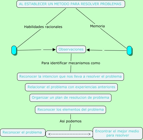 Este Cmap, tiene información relacionada con: filosofiajordan, Reconocer los elementos del problema Asi podemos <------------------------>, AL ESTABLECER UN METODO PARA RESOLVER PROBLEMAS Memoria, Observaciones, AL ESTABLECER UN METODO PARA RESOLVER PROBLEMAS Habilidades racionales, Observaciones Para identificar mecanismos como Reconocer la intencion que nos lleva a resolver el problema, Observaciones