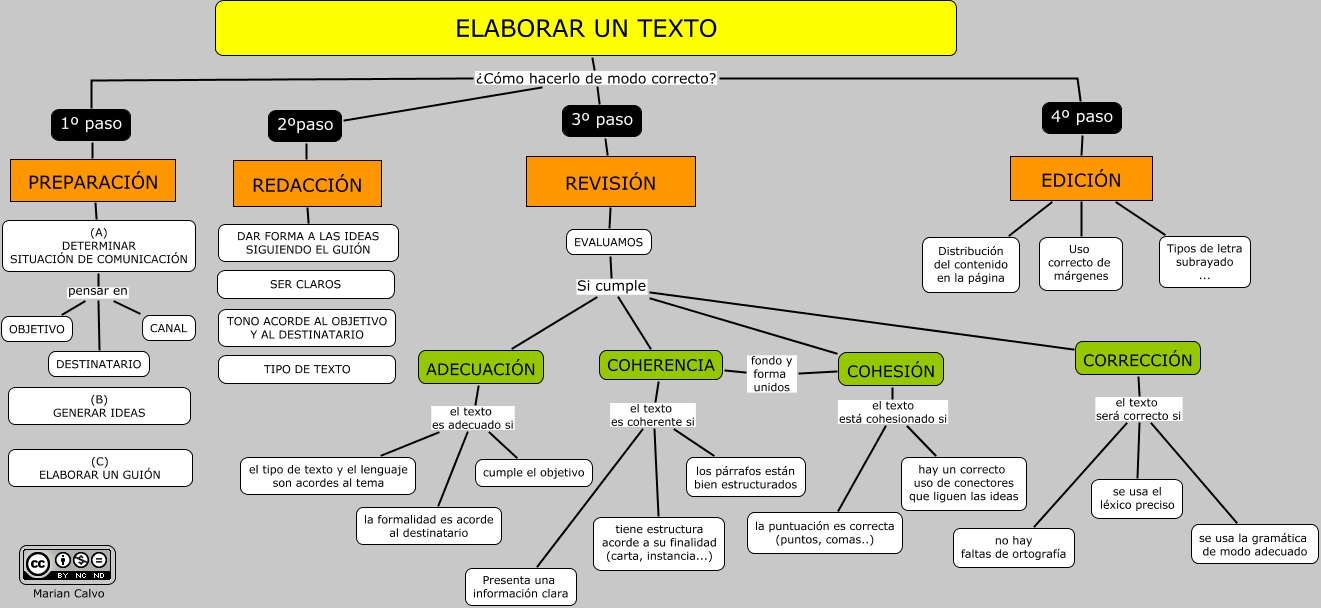 Este Cmap, tiene información relacionada con: Elaborar un texto.cmap, COHERENCIA el texto es coherente si tiene estructura acorde a su finalidad (carta, instancia...), ELABORAR UN TEXTO ¿Cómo hacerlo de modo correcto? 2ºpaso, 3º paso REVISIÓN EVALUAMOS, ADECUACIÓN el texto es adecuado si el tipo de texto y el lenguaje son acordes al tema, COHESIÓN el texto está cohesionado si la puntuación es correcta (puntos, comas..), ELABORAR UN TEXTO ¿Cómo hacerlo de modo correcto? 4º paso, (A) DETERMINAR SITUACIÓN DE COMUNICACIÓN pensar en CANAL, 4º paso EDICIÓN Distribución del contenido en la página, CORRECCIÓN el texto será correcto si se usa la gramática de modo adecuado, ADECUACIÓN el texto es adecuado si cumple el objetivo, COHERENCIA el texto es coherente si los párrafos están bien estructurados, COHESIÓN el texto está cohesionado si hay un correcto uso de conectores que liguen las ideas, 4º paso EDICIÓN Tipos de letra subrayado ..., ELABORAR UN TEXTO ¿Cómo hacerlo de modo correcto? 3º paso, CORRECCIÓN el texto será correcto si no hay faltas de ortografía, ELABORAR UN TEXTO ¿Cómo hacerlo de modo correcto? 1º paso, EVALUAMOS Si cumple ADECUACIÓN, (A) DETERMINAR SITUACIÓN DE COMUNICACIÓN pensar en DESTINATARIO, CORRECCIÓN el texto será correcto si se usa el léxico preciso, COHERENCIA fondo y forma unidos COHESIÓN