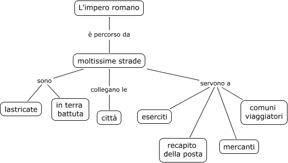 Questa Cmap, creata con IHMC CmapTools, contiene informazioni relative a: Vol 1 Cap 1 Par 1 - d) Le strade, moltissime strade sono in terra battuta, moltissime strade servono a recapito della posta, moltissime strade servono a mercanti, moltissime strade sono lastricate, L'impero romano è percorso da moltissime strade, moltissime strade servono a comuni viaggiatori, moltissime strade collegano le città, moltissime strade servono a eserciti