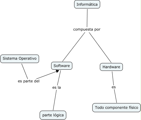 Este Cmap, tiene información relacionada con: Luis, Hardware es Todo componente físico, Software es la parte lógica, Informática compuesta por Hardware, Sistema Operativo es parte del Software, Informática compuesta por Software