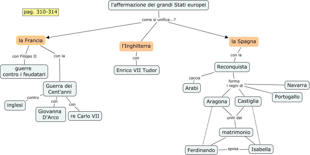 Questa Cmap, creata con IHMC CmapTools, contiene informazioni relative a: Formazione Stati nazionali, l'affermazione dei grandi Stati europei come si unifica...? l'Inghilterra, la Francia con la Guerra dei Cent'anni, Castiglia ???? Isabella, matrimonio ???? Ferdinando, Reconquista forma i regni di Castiglia, l'affermazione dei grandi Stati europei come si unifica...? la Spagna, Aragona ???? Ferdinando, la Francia con Filippo II guerre contro i feudatari, l'affermazione dei grandi Stati europei come si unifica...? la Francia, Guerra dei Cent'anni contro inglesi, Reconquista forma i regni di Navarra, Guerra dei Cent'anni con Giovanna D'Arco, Reconquista forma i regni di Aragona, l'Inghilterra con Enrico VII Tudor, Reconquista forma i regni di Portogallo, Ferdinando sposa Isabella, la Spagna con la Reconquista, Aragona uniti dal matrimonio, Reconquista caccia Arabi, Castiglia uniti dal matrimonio