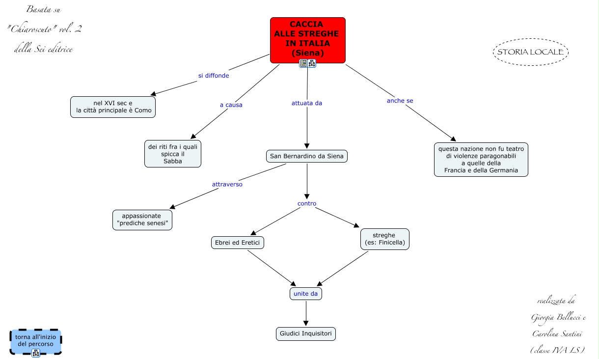 Questa Cmap, creata con IHMC CmapTools, contiene informazioni relative a: CACCIA ALLE STREGHE 4ALS, San Bernardino da Siena contro streghe (es: Finicella), unite da Giudici Inquisitori, CACCIA ALLE STREGHE IN ITALIA (Siena) a causa dei riti fra i quali spicca il Sabba, San Bernardino da Siena contro Ebrei ed Eretici, CACCIA ALLE STREGHE IN ITALIA (Siena) anche se questa nazione non fu teatro di violenze paragonabili a quelle della Francia e della Germania, Ebrei ed Eretici unite da, CACCIA ALLE STREGHE IN ITALIA (Siena) attuata da San Bernardino da Siena, CACCIA ALLE STREGHE IN ITALIA (Siena) si diffonde nel XVI sec e la città principale è Como, San Bernardino da Siena attraverso appassionate "prediche senesi", streghe (es: Finicella) unite da