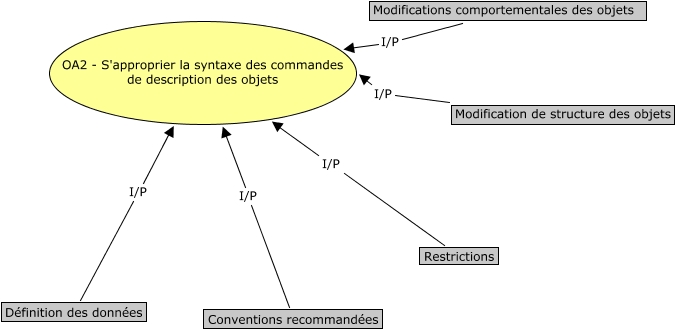 Cette carte de concepts créée avec IHMC CmapTools traite de: Syntaxe du langage LDD, Restrictions I/P OA2 - S'approprier la syntaxe des commandes de description des objets, Modifications comportementales des objets I/P OA2 - S'approprier la syntaxe des commandes de description des objets, Conventions recommandées I/P OA2 - S'approprier la syntaxe des commandes de description des objets, Définition des données I/P OA2 - S'approprier la syntaxe des commandes de description des objets, Modification de structure des objets I/P OA2 - S'approprier la syntaxe des commandes de description des objets