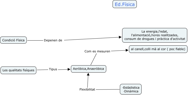 Aquest mapa conceptual conté informació relacionada amb: Gimnàstica, ·Estàdistica ·Dinàmica Flexibilitat Aeròbica,Anaeròbica, Condició Física Depenen de La energia,l'edat, l'alimentació,hores realitzades, consum de drogues i pràctica d'activitat, Les qualitats fisìques Tipus Aeròbica,Anaeròbica, Aeròbica,Anaeròbica Com es mesuren al canell,colli mà al cor ( poc fiable)