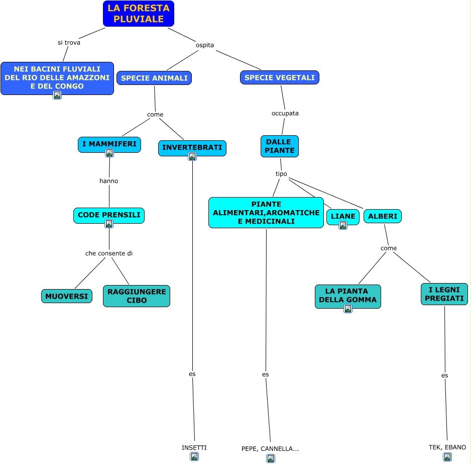 This Concept Map, created with IHMC CmapTools, has information related to: foresta pluviale, ALBERI come LA PIANTA DELLA GOMMA, CODE PRENSILI che consente di RAGGIUNGERE CIBO, I MAMMIFERI hanno CODE PRENSILI, LA FORESTA PLUVIALE si trova NEI BACINI FLUVIALI DEL RIO DELLE AMAZZONI E DEL CONGO, I LEGNI PREGIATI es TEK, EBANO, ALBERI come I LEGNI PREGIATI, DALLE PIANTE tipo ALBERI, DALLE PIANTE tipo LIANE, LA FORESTA PLUVIALE ospita SPECIE VEGETALI, INVERTEBRATI es INSETTI, CODE PRENSILI che consente di MUOVERSI, SPECIE VEGETALI occupata DALLE PIANTE, PIANTE ALIMENTARI,AROMATICHE E MEDICINALI es PEPE, CANNELLA..., DALLE PIANTE tipo PIANTE ALIMENTARI,AROMATICHE E MEDICINALI, SPECIE ANIMALI come INVERTEBRATI, SPECIE ANIMALI come I MAMMIFERI, LA FORESTA PLUVIALE ospita SPECIE ANIMALI