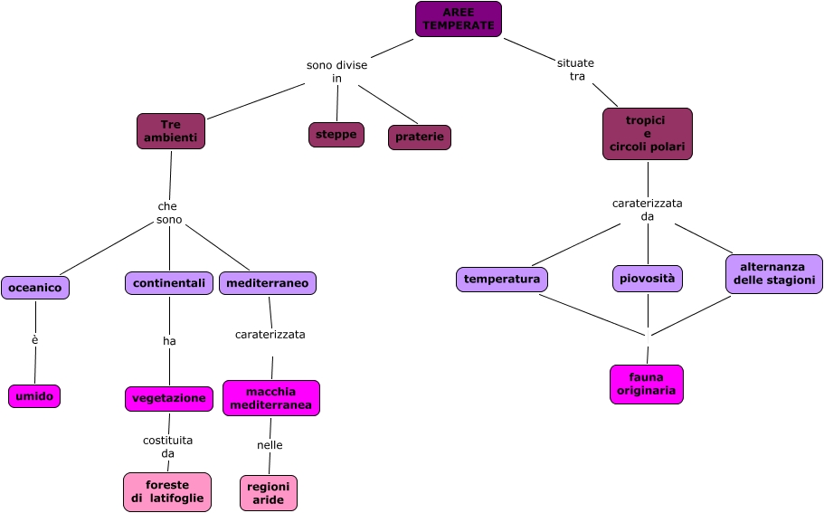 Questa Cmap, creata con IHMC CmapTools, contiene informazioni relative a: aree temperate, AREE TEMPERATE sono divise in steppe, tropici e circoli polari caraterizzata da piovosità, temperatura fauna originaria, temperatura caraterizzata da piovosità, piovosità fauna originaria, vegetazione costituita da foreste di latifoglie, alternanza delle stagioni caraterizzata da piovosità, AREE TEMPERATE situate tra tropici e circoli polari, AREE TEMPERATE sono divise in Tre ambienti, Tre ambienti che sono oceanico, Tre ambienti che sono mediterraneo, continentali ha vegetazione, mediterraneo caraterizzata macchia mediterranea, Tre ambienti che sono continentali, AREE TEMPERATE sono divise in praterie, oceanico è umido, alternanza delle stagioni fauna originaria, macchia mediterranea nelle regioni aride