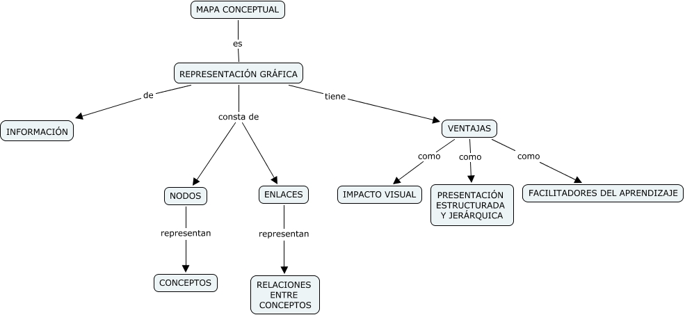 Este Cmap, tiene información relacionada con: Qué es un mapa conceptual, REPRESENTACIÓN GRÁFICA consta de NODOS, MAPA CONCEPTUAL es REPRESENTACIÓN GRÁFICA, ENLACES representan RELACIONES ENTRE CONCEPTOS, VENTAJAS como FACILITADORES DEL APRENDIZAJE, NODOS representan CONCEPTOS, VENTAJAS como IMPACTO VISUAL, REPRESENTACIÓN GRÁFICA de INFORMACIÓN, REPRESENTACIÓN GRÁFICA tiene VENTAJAS, VENTAJAS como PRESENTACIÓN ESTRUCTURADA Y JERÁRQUICA, REPRESENTACIÓN GRÁFICA consta de ENLACES