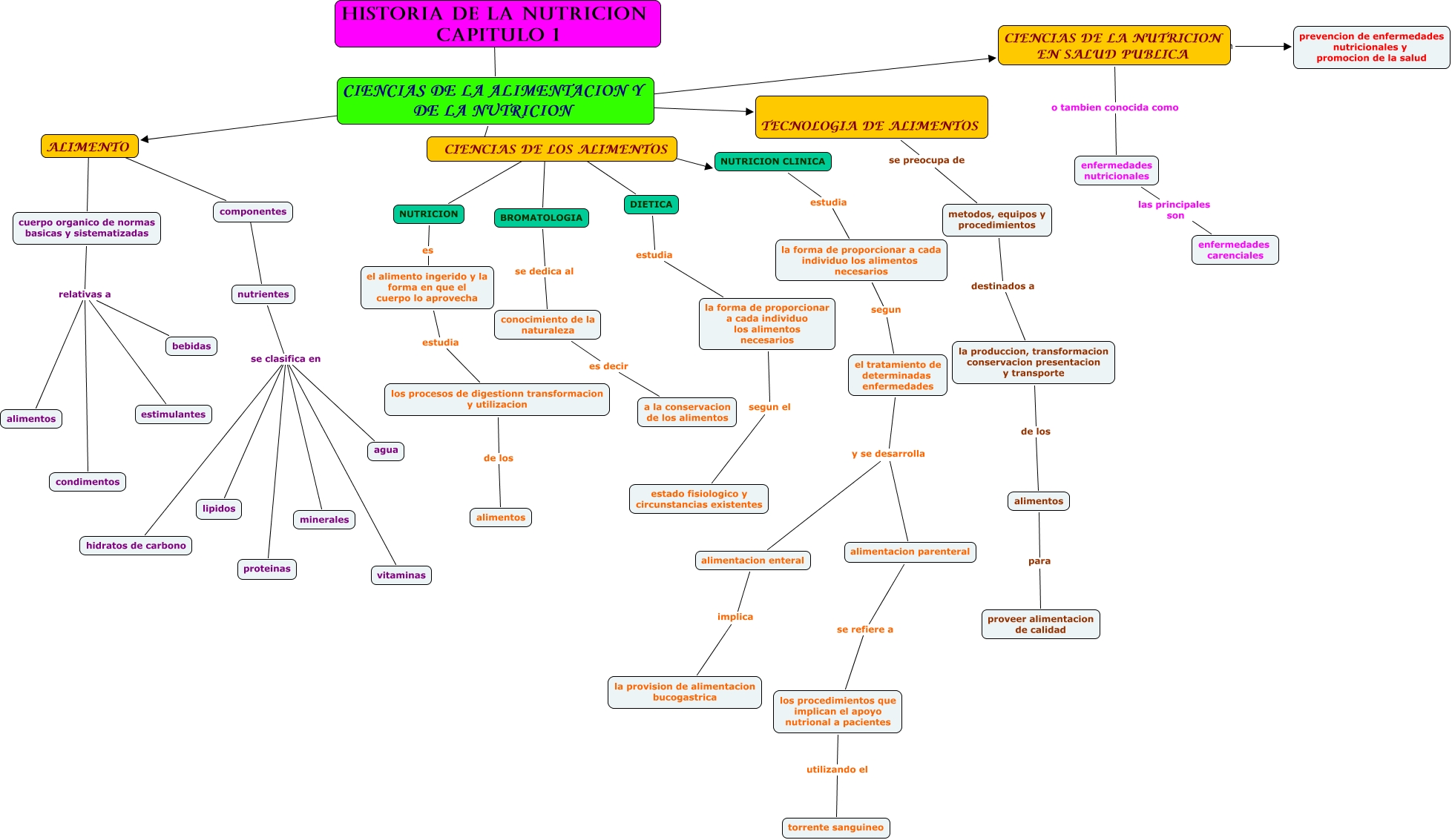 Este Cmap, tiene información relacionada con: CAPITULO 1, la forma de proporcionar a cada individuo los alimentos necesarios segun el tratamiento de determinadas enfermedades, alimentacion parenteral se refiere a los procedimientos que implican el apoyo nutrional a pacientes, nutrientes se clasifica en hidratos de carbono, los procesos de digestionn transformacion y utilizacion de los alimentos, DIETICA estudia la forma de proporcionar a cada individuo los alimentos necesarios, CIENCIAS DE LA ALIMENTACION Y DE LA NUTRICION ???? CIENCIAS DE LOS ALIMENTOS, el tratamiento de determinadas enfermedades y se desarrolla alimentacion parenteral, conocimiento de la naturaleza es decir a la conservacion de los alimentos, nutrientes se clasifica en lipidos, el alimento ingerido y la forma en que el cuerpo lo aprovecha estudia los procesos de digestionn transformacion y utilizacion, cuerpo organico de normas basicas y sistematizadas relativas a condimentos, ALIMENTO ???? cuerpo organico de normas basicas y sistematizadas, CIENCIAS DE LA NUTRICION EN SALUD PUBLICA o tambien conocida como enfermedades nutricionales, alimentos para proveer alimentacion de calidad, metodos, equipos y procedimientos destinados a la produccion, transformacion conservacion presentacion y transporte, la produccion, transformacion conservacion presentacion y transporte de los alimentos, BROMATOLOGIA se dedica al conocimiento de la naturaleza, cuerpo organico de normas basicas y sistematizadas relativas a bebidas, enfermedades nutricionales las principales son enfermedades carenciales, componentes ???? nutrientes