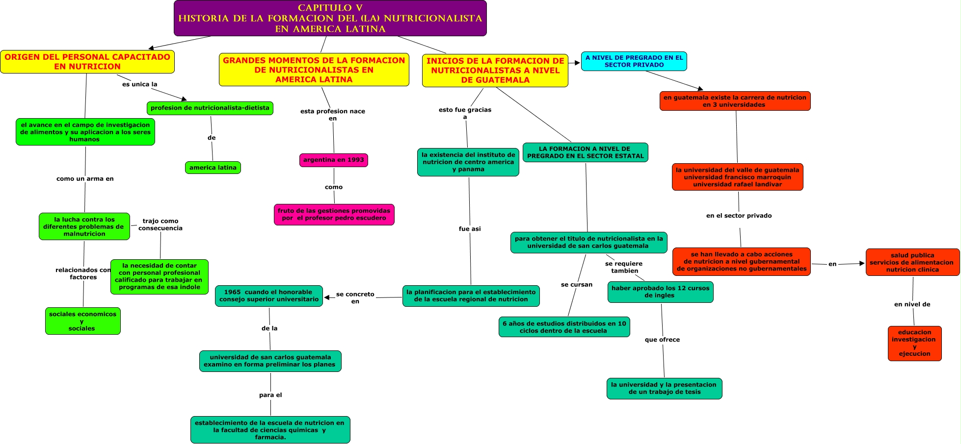 Este Cmap, tiene información relacionada con: CAPITULO 5, la existencia del instituto de nutricion de centro america y panama fue asi la planificacion para el establecimiento de la escuela regional de nutricion, INICIOS DE LA FORMACION DE NUTRICIONALISTAS A NIVEL DE GUATEMALA ???? LA FORMACION A NIVEL DE PREGRADO EN EL SECTOR ESTATAL, se han llevado a cabo acciones de nutricion a nivel gubernamental de organizaciones no gubernamentales en salud publica servicios de alimentacion nutricion clinica, salud publica servicios de alimentacion nutricion clinica en nivel de educacion investigacion y ejecucion, ORIGEN DEL PERSONAL CAPACITADO EN NUTRICION es unica la profesion de nutricionalista-dietista, para obtener el titulo de nutricionalista en la universidad de san carlos guatemala se cursan 6 años de estudios distribuidos en 10 ciclos dentro de la escuela, CAPITULO V HISTORIA DE LA FORMACION DEL (LA) NUTRICIONALISTA EN AMERICA LATINA ???? GRANDES MOMENTOS DE LA FORMACION DE NUTRICIONALISTAS EN AMERICA LATINA, ???? ???? el avance en el campo de investigacion de alimentos y su aplicacion a los seres humanos, el avance en el campo de investigacion de alimentos y su aplicacion a los seres humanos como un arma en la lucha contra los diferentes problemas de malnutricion, la lucha contra los diferentes problemas de malnutricion trajo como consecuencia la necesidad de contar con personal profesional calificado para trabajar en programas de esa indole, A NIVEL DE PREGRADO EN EL SECTOR PRIVADO ???? en guatemala existe la carrera de nutricion en 3 universidades, LA FORMACION A NIVEL DE PREGRADO EN EL SECTOR ESTATAL ???? para obtener el titulo de nutricionalista en la universidad de san carlos guatemala, haber aprobado los 12 cursos de ingles que ofrece la universidad y la presentacion de un trabajo de tesis, argentina en 1993 como fruto de las gestiones promovidas por el profesor pedro escudero, GRANDES MOMENTOS DE LA FORMACION DE NUTRICIONALISTAS EN AMERICA LATINA esta profesion nace en argentina en 1993, la universidad del valle de guatemala universidad francisco marroquin universidad rafael landivar en el sector privado se han llevado a cabo acciones de nutricion a nivel gubernamental de organizaciones no gubernamentales, INICIOS DE LA FORMACION DE NUTRICIONALISTAS A NIVEL DE GUATEMALA esto fue gracias a la existencia del instituto de nutricion de centro america y panama, para obtener el titulo de nutricionalista en la universidad de san carlos guatemala se requiere tambien haber aprobado los 12 cursos de ingles, CAPITULO V HISTORIA DE LA FORMACION DEL (LA) NUTRICIONALISTA EN AMERICA LATINA ???? ORIGEN DEL PERSONAL CAPACITADO EN NUTRICION, universidad de san carlos guatemala examino en forma preliminar los planes para el establecimiento de la escuela de nutricion en la facultad de ciencias quimicas y farmacia.
