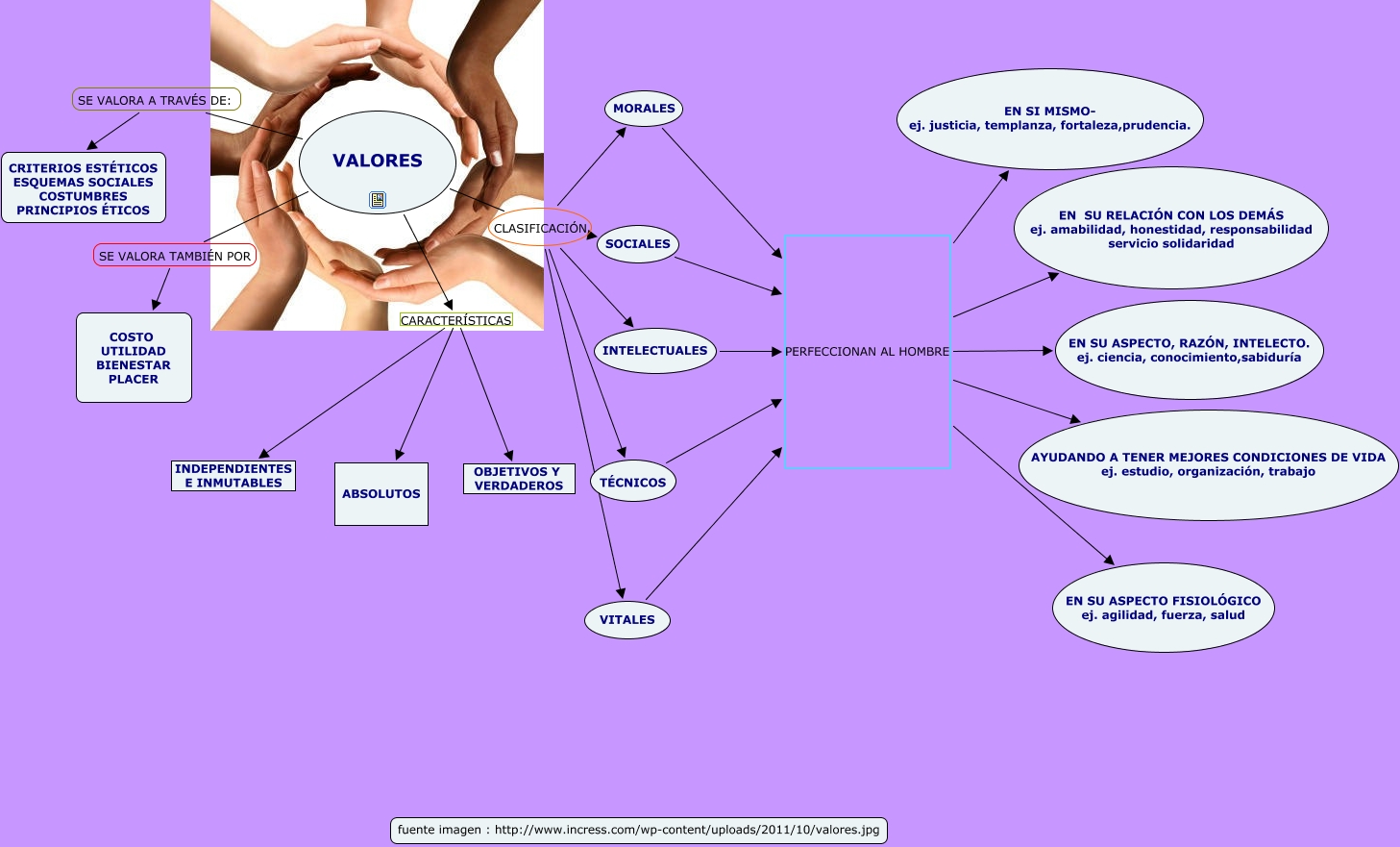 Este Cmap, tiene información relacionada con: VALORES, VALORES CLASIFICACIÓN VITALES, VALORES CARACTERÍSTICAS ABSOLUTOS, MORALES PERFECCIONAN AL HOMBRE EN SU ASPECTO, RAZÓN, INTELECTO. ej. ciencia, conocimiento,sabiduría, VALORES SE VALORA A TRAVÉS DE: CRITERIOS ESTÉTICOS ESQUEMAS SOCIALES COSTUMBRES PRINCIPIOS ÉTICOS, VITALES PERFECCIONAN AL HOMBRE EN SU ASPECTO FISIOLÓGICO ej. agilidad, fuerza, salud, VITALES PERFECCIONAN AL HOMBRE AYUDANDO A TENER MEJORES CONDICIONES DE VIDA ej. estudio, organización, trabajo, VITALES PERFECCIONAN AL HOMBRE EN SU RELACIÓN CON LOS DEMÁS ej. amabilidad, honestidad, responsabilidad servicio solidaridad, INTELECTUALES PERFECCIONAN AL HOMBRE EN SU ASPECTO FISIOLÓGICO ej. agilidad, fuerza, salud, SOCIALES PERFECCIONAN AL HOMBRE EN SU ASPECTO FISIOLÓGICO ej. agilidad, fuerza, salud, MORALES PERFECCIONAN AL HOMBRE EN SU RELACIÓN CON LOS DEMÁS ej. amabilidad, honestidad, responsabilidad servicio solidaridad, MORALES PERFECCIONAN AL HOMBRE EN SU ASPECTO FISIOLÓGICO ej. agilidad, fuerza, salud, MORALES PERFECCIONAN AL HOMBRE EN SI MISMO- ej. justicia, templanza, fortaleza,prudencia., VITALES PERFECCIONAN AL HOMBRE EN SU ASPECTO, RAZÓN, INTELECTO. ej. ciencia, conocimiento,sabiduría, VALORES CLASIFICACIÓN SOCIALES, SOCIALES PERFECCIONAN AL HOMBRE AYUDANDO A TENER MEJORES CONDICIONES DE VIDA ej. estudio, organización, trabajo, TÉCNICOS PERFECCIONAN AL HOMBRE EN SU ASPECTO FISIOLÓGICO ej. agilidad, fuerza, salud, INTELECTUALES PERFECCIONAN AL HOMBRE AYUDANDO A TENER MEJORES CONDICIONES DE VIDA ej. estudio, organización, trabajo, INTELECTUALES PERFECCIONAN AL HOMBRE EN SI MISMO- ej. justicia, templanza, fortaleza,prudencia., VALORES CLASIFICACIÓN MORALES, TÉCNICOS PERFECCIONAN AL HOMBRE EN SI MISMO- ej. justicia, templanza, fortaleza,prudencia.