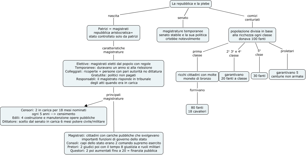 Questa Cmap, creata con IHMC CmapTools, contiene informazioni relative a: Roma parte 3, Elettive: magistrati eletti dal popolo con regole Temporanee: duravano un anno si alla rielezione Colleggiali: ricoperte + persone con pari autorità no dittatura Gratutite: politici non pagati Responsabli: il magistrato risponde in tribunale degli atti quando era in carica principali magistrature Censori: 2 in carica per 18 mesi nominati ogni 5 anni --> censimento Edili: 4 costruzione e manutenzione opere pubbliche Dittatore: scelto dal senato in carica 6 mesi potere civile/militare, popolazione divisia in base alla ricchezza ogni classe donava 100 fanti 2° 3° e 4° classe garantivano 20 fanti a classe, Patrizi = magistrati repubblica aristocratica= stato controllato solo da patrizi caratteristiche magistrature Elettive: magistrati eletti dal popolo con regole Temporanee: duravano un anno si alla rielezione Colleggiali: ricoperte + persone con pari autorità no dittatura Gratutite: politici non pagati Responsabli: il magistrato risponde in tribunale degli atti quando era in carica, Elettive: magistrati eletti dal popolo con regole Temporanee: duravano un anno si alla rielezione Colleggiali: ricoperte + persone con pari autorità no dittatura Gratutite: politici non pagati Responsabli: il magistrato risponde in tribunale degli atti quando era in carica principali magistrature Magistrati: cittadini con cariche pubbliche che svolgevano importanti funzioni di governo dello stato Consoli: capi dello stato erano 2 comando supremo esercito Pretori: 2 giudici poi con il tempo 8 giustizia e ruoli militari Questori: 2 poi aumentati fino a 20 = finanzia pubblica, popolazione divisia in base alla ricchezza ogni classe donava 100 fanti proletari garantivano 5 centurie non armate, ricchi cittadini con molte monete di bronzo fornivano 80 fanti 18 cavalieri, popolazione divisia in base alla ricchezza ogni classe donava 100 fanti 5° clsse 30 fanti, La repubblica e la plebe senato magistrature temporanee senato stabile e la sua politica crtebbe notevolmente, La repubblica e la plebe comizi centuriati popolazione divisia in base alla ricchezza ogni classe donava 100 fanti, popolazione divisia in base alla ricchezza ogni classe donava 100 fanti prima classe ricchi cittadini con molte monete di bronzo, La repubblica e la plebe nascita Patrizi = magistrati repubblica aristocratica= stato controllato solo da patrizi