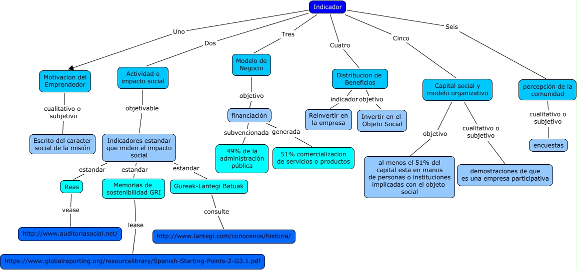 Este Cmap, tiene información relacionada con: empresa social 3, Capital social y modelo organizativo objetivo al menos el 51% del capital esta en manos de personas o instituciones implicadas con el objeto social, percepción de la comunidad cualitativo o subjetivo encuestas, Indicador Cinco Capital social y modelo organizativo, Indicador Seis percepción de la comunidad, Reas vease http://www.auditoriasocial.net/, Modelo de Negocio objetivo financiación, financiación generada 51% comercializacion de servicios o productos, Motivacion del Emprendedor cualitativo o subjetivo Escrito del caracter social de la misión, Indicador Uno Motivacion del Emprendedor, Indicador Dos Actividad e impacto social, financiación subvencionada 49% de la administración pública, Indicador Cuatro Distribucion de Beneficios, Distribucion de Beneficios indicador Reinvertir en la empresa, Gureak-Lantegi Batuak consulte http://www.lantegi.com/conocenos/historia/, Indicadores estandar que miden el impacto social estandar Reas, Indicadores estandar que miden el impacto social estandar Memorias de sostenibilidad GRI, Memorias de sostenibilidad GRI lease https://www.globalreporting.org/resourcelibrary/Spanish-Starting-Points-2-G3.1.pdf, Capital social y modelo organizativo cualitativo o subjetivo demostraciones de que es una empresa participativa, Actividad e impacto social objetivable Indicadores estandar que miden el impacto social, Indicador Tres Modelo de Negocio