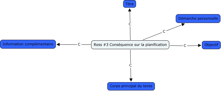 Cette carte de concepts créée avec IHMC CmapTools traite de: OA2ress3, Ress #3 Conséquence sur la planification C Objectif, Ress #3 Conséquence sur la planification C Démarche personnelle, Ress #3 Conséquence sur la planification C Information complémentaire, Ress #3 Conséquence sur la planification C Corps principal du texte, Ress #3 Conséquence sur la planification C Titre