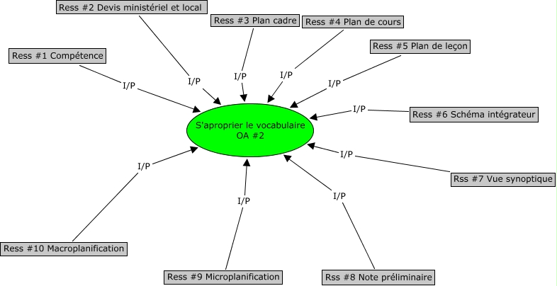 Cette carte de concepts créée avec IHMC CmapTools traite de: UA1OA4, Ress #2 Devis ministériel et local I/P S'aproprier le vocabulaire OA #2