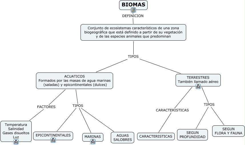 Este Cmap, tiene información relacionada con: TEMA 4 TODO ESQUEMA, ACUATICOS Formados por las masas de agua marinas (saladas) y epicontinentales (dulces) TIPOS AGUAS SALOBRES, Conjunto de ecosistemas característicos de una zona biogeográfica que está definido a partir de su vegetación y de las especies animales que predominan TIPOS TERRESTRES También llamado aéreo, ACUATICOS Formados por las masas de agua marinas (saladas) y epicontinentales (dulces) FACTORES Temperatura Salinidad Gases disueltos Luz, Conjunto de ecosistemas característicos de una zona biogeográfica que está definido a partir de su vegetación y de las especies animales que predominan TIPOS ACUATICOS Formados por las masas de agua marinas (saladas) y epicontinentales (dulces), ACUATICOS Formados por las masas de agua marinas (saladas) y epicontinentales (dulces) TIPOS EPICONTINENTALES, ACUATICOS Formados por las masas de agua marinas (saladas) y epicontinentales (dulces) TIPOS MARINAS, TERRESTRES También llamado aéreo CARACTERISTICAS CARACTERISTICAS, TERRESTRES También llamado aéreo TIPOS SEGUN FLORA Y FAUNA, BIOMAS DEFINICION Conjunto de ecosistemas característicos de una zona biogeográfica que está definido a partir de su vegetación y de las especies animales que predominan, TERRESTRES También llamado aéreo TIPOS SEGUN PROFUNDIDAD
