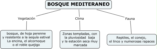Este Cmap, tiene información relacionada con: BOSQUE MEDITERRANEO, BOSQUE MEDITERANEO Clima Zonas templadas, con la pluviosidad baja y la estación seca muy marcada, BOSQUE MEDITERANEO Fauna Reptiles, el conejo, el lince y numerosas rapaces, BOSQUE MEDITERANEO Vegetación bosque, de hoja perenne y resistente a la sequía estival La encina, el alcornoque o el roble quejigo