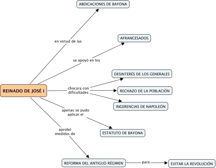 Este Cmap, tiene información relacionada con: gobierno de José I, REINADO DE JOSÉ I chocara con dificultades DESINTERÉS DE LOS GENERALES, REINADO DE JOSÉ I chocara con dificultades INGERENCIAS DE NAPOLEÓN, REFORMA DEL ANTIGUO RÉGIMEN para EVITAR LA REVOLUCIÓN, REINADO DE JOSÉ I en virtud de las ABDICACIONES DE BAYONA, REINADO DE JOSÉ I se apoyó en los AFRANCESADOS, REINADO DE JOSÉ I aprobó medidas de REFORMA DEL ANTIGUO RÉGIMEN, REINADO DE JOSÉ I chocara con dificultades RECHAZO DE LA POBLACIÓN, REINADO DE JOSÉ I apenas se pudo aplicar el ESTATUTO DE BAYONA