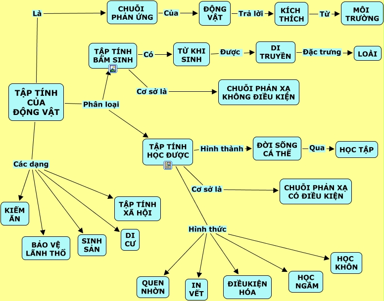 This Concept Map, created with IHMC CmapTools, has information related to: Tập tính ĐV hoàn chỉnh, TẬP TÍNH HỌC ĐƯỢC Hình thức HỌC NGẦM, TẬP TÍNH HỌC ĐƯỢC Hình thức QUEN NHỜN, TỪ KHI SINH Được DI TRUYỀN, ĐỘNG VẬT Trả lời KÍCH THÍCH, TẬP TÍNH CỦA ĐỘNG VẬT Là CHUỖI PHẢN ỨNG, TẬP TÍNH HỌC ĐƯỢC Hình thành ĐỜI SỐNG CÁ THỂ, TẬP TÍNH HỌC ĐƯỢC Hình thức ĐIỀUKIỆN HÓA, KÍCH THÍCH Từ MÔI TRƯỜNG, TẬP TÍNH CỦA ĐỘNG VẬT Phân loại TẬP TÍNH HỌC ĐƯỢC, TẬP TÍNH HỌC ĐƯỢC Hình thức IN VẾT, TẬP TÍNH CỦA ĐỘNG VẬT Các dạng DI CƯ, DI TRUYỀN Đặc trưng LOÀI, CHUỖI PHẢN ỨNG Của ĐỘNG VẬT, TẬP TÍNH HỌC ĐƯỢC Cơ sở là CHUỖI PHẢN XẠ CÓ ĐIỀU KIỆN, TẬP TÍNH CỦA ĐỘNG VẬT Các dạng TẬP TÍNH XÃ HỘI, TẬP TÍNH CỦA ĐỘNG VẬT Các dạng BẢO VỆ LÃNH THỔ, TẬP TÍNH CỦA ĐỘNG VẬT Các dạng SINH SẢN, TẬP TÍNH CỦA ĐỘNG VẬT Các dạng KIẾM ĂN, TẬP TÍNH CỦA ĐỘNG VẬT Phân loại TẬP TÍNH BẨM SINH, TẬP TÍNH BẨM SINH Cơ sở là CHUỖI PHẢN XẠ KHÔNG ĐIỀU KIỆN