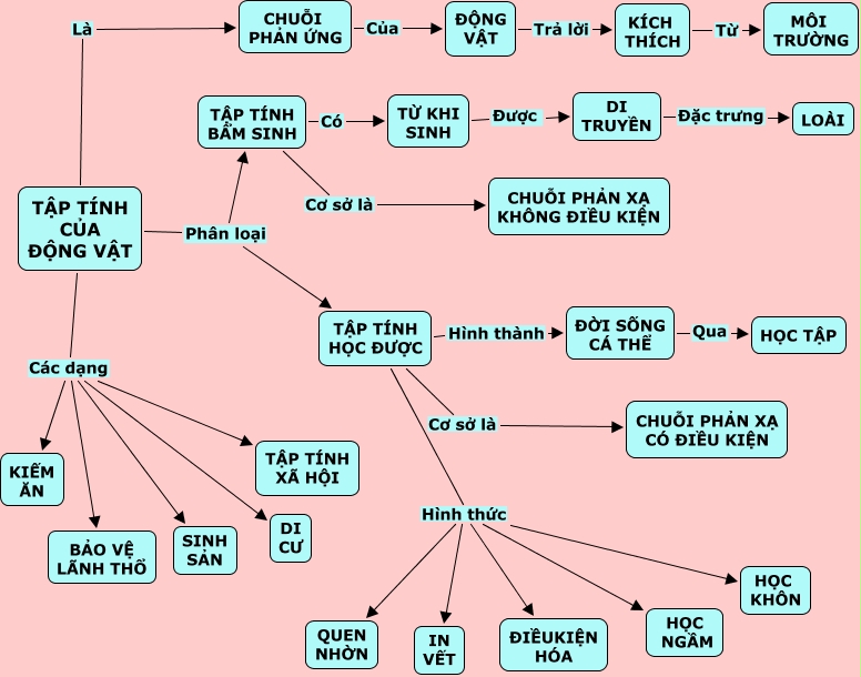 This Concept Map, created with IHMC CmapTools, has information related to: Tập tính ĐV, TẬP TÍNH BẨM SINH Có TỪ KHI SINH, TẬP TÍNH HỌC ĐƯỢC Cơ sở là CHUỖI PHẢN XẠ CÓ ĐIỀU KIỆN, TẬP TÍNH CỦA ĐỘNG VẬT Các dạng SINH SẢN, TẬP TÍNH HỌC ĐƯỢC Hình thức ĐIỀUKIỆN HÓA, TẬP TÍNH BẨM SINH Cơ sở là CHUỖI PHẢN XẠ KHÔNG ĐIỀU KIỆN, DI TRUYỀN Đặc trưng LOÀI, TẬP TÍNH CỦA ĐỘNG VẬT Là CHUỖI PHẢN ỨNG, TẬP TÍNH CỦA ĐỘNG VẬT Các dạng DI CƯ, CHUỖI PHẢN ỨNG Của ĐỘNG VẬT, TẬP TÍNH CỦA ĐỘNG VẬT Phân loại TẬP TÍNH HỌC ĐƯỢC, TẬP TÍNH CỦA ĐỘNG VẬT Các dạng BẢO VỆ LÃNH THỔ, TẬP TÍNH HỌC ĐƯỢC Hình thức HỌC KHÔN, ĐỘNG VẬT Trả lời KÍCH THÍCH, TẬP TÍNH CỦA ĐỘNG VẬT Các dạng KIẾM ĂN, ĐỜI SỐNG CÁ THỂ Qua HỌC TẬP, TẬP TÍNH HỌC ĐƯỢC Hình thành ĐỜI SỐNG CÁ THỂ, KÍCH THÍCH Từ MÔI TRƯỜNG, TẬP TÍNH HỌC ĐƯỢC Hình thức QUEN NHỜN, TẬP TÍNH CỦA ĐỘNG VẬT Các dạng TẬP TÍNH XÃ HỘI, TẬP TÍNH HỌC ĐƯỢC Hình thức HỌC NGẦM