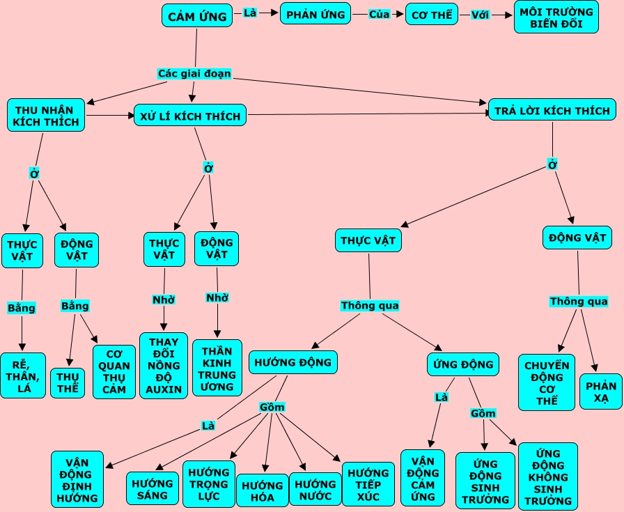 This Concept Map, created with IHMC CmapTools, has information related to: Cảm ứng chung ĐV và TV ở cấp độ cơ thể, THỰC VẬT Nhờ THAY ĐỔI NỒNG ĐỘ AUXIN, CẢM ỨNG Các giai đoạn XỬ LÍ KÍCH THÍCH, THU NHẬN KÍCH THÍCH ???? XỬ LÍ KÍCH THÍCH, HƯỚNG ĐỘNG Gồm HƯỚNG TIẾP XÚC, ỨNG ĐỘNG Gồm ỨNG ĐỘNG SINH TRƯỞNG, HƯỚNG ĐỘNG Gồm HƯỚNG NƯỚC, CẢM ỨNG Các giai đoạn TRẢ LỜI KÍCH THÍCH, HƯỚNG ĐỘNG Gồm HƯỚNG HÓA, XỬ LÍ KÍCH THÍCH Ở ĐỘNG VẬT, ĐỘNG VẬT Bằng CƠ QUAN THỤ CẢM, TRẢ LỜI KÍCH THÍCH Ở ĐỘNG VẬT, TRẢ LỜI KÍCH THÍCH Ở THỰC VẬT, PHẢN ỨNG Của CƠ THỂ, ĐỘNG VẬT Thông qua CHUYỂN ĐỘNG CƠ THỂ, ĐỘNG VẬT Thông qua PHẢN XẠ, THỰC VẬT Bằng RỄ, THÂN, LÁ, THỰC VẬT Thông qua ỨNG ĐỘNG, ỨNG ĐỘNG Là VẬN ĐỘNG CẢM ỨNG, CẢM ỨNG Các giai đoạn THU NHẬN KÍCH THÍCH, XỬ LÍ KÍCH THÍCH ???? TRẢ LỜI KÍCH THÍCH