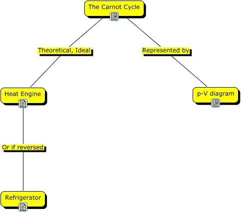 This Concept Map, created with IHMC CmapTools, has information related to: Carnot Cycle, Heat Engine Or if reversed Refrigerator, The Carnot Cycle Theoretical, Ideal Heat Engine, The Carnot Cycle Represented by p-V diagram