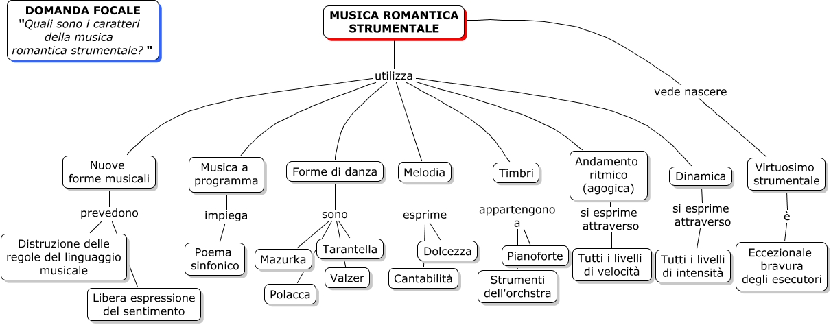 Questa Cmap, creata con IHMC CmapTools, contiene informazioni relative a: 2 La Musica Romantica Strumentale, Forme di danza sono Valzer, Timbri appartengono a Pianoforte, MUSICA ROMANTICA STRUMENTALE utilizza Forme di danza, Musica a programma impiega Poema sinfonico, MUSICA ROMANTICA STRUMENTALE utilizza Nuove forme musicali, Melodia esprime Dolcezza, MUSICA ROMANTICA STRUMENTALE utilizza Melodia, MUSICA ROMANTICA STRUMENTALE utilizza Timbri, Nuove forme musicali prevedono Distruzione delle regole del linguaggio musicale, Andamento ritmico (agogica) si esprime attraverso Tutti i livelli di velocità, MUSICA ROMANTICA STRUMENTALE utilizza Andamento ritmico (agogica), MUSICA ROMANTICA STRUMENTALE vede nascere Virtuosimo strumentale, Timbri appartengono a Strumenti dell'orchstra, Forme di danza sono Tarantella, Virtuosimo strumentale è Eccezionale bravura degli esecutori, Dinamica si esprime attraverso Tutti i livelli di intensità, Forme di danza sono Mazurka, MUSICA ROMANTICA STRUMENTALE utilizza Dinamica, MUSICA ROMANTICA STRUMENTALE utilizza Musica a programma, Melodia esprime Cantabilità