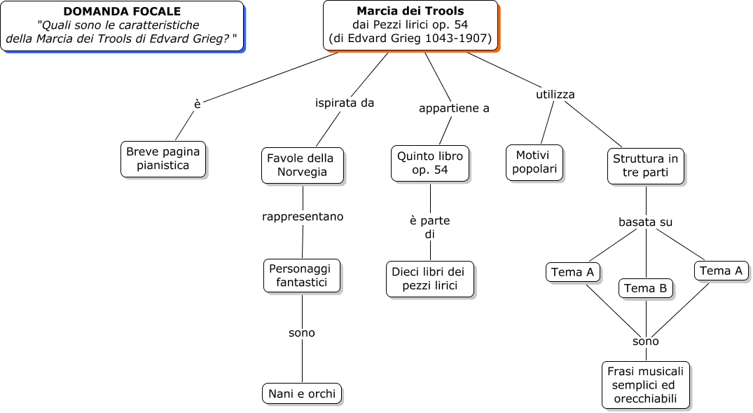 Questa Cmap, creata con IHMC CmapTools, contiene informazioni relative a: 7 Marcia dei Trools (E. Grieg), Struttura in tre parti basata su Tema B, Marcia dei Trools dai Pezzi lirici op. 54 (di Edvard Grieg 1043-1907) ispirata da Favole della Norvegia, Favole della Norvegia rappresentano Personaggi fantastici, Marcia dei Trools dai Pezzi lirici op. 54 (di Edvard Grieg 1043-1907) appartiene a Quinto libro op. 54, Tema A sono Frasi musicali semplici ed orecchiabili, Quinto libro op. 54 è parte di Dieci libri dei pezzi lirici, Marcia dei Trools dai Pezzi lirici op. 54 (di Edvard Grieg 1043-1907) utilizza Struttura in tre parti, Struttura in tre parti basata su Tema A, Tema A sono Frasi musicali semplici ed orecchiabili, Struttura in tre parti basata su Tema A, Marcia dei Trools dai Pezzi lirici op. 54 (di Edvard Grieg 1043-1907) utilizza Motivi popolari, Personaggi fantastici sono Nani e orchi, Marcia dei Trools dai Pezzi lirici op. 54 (di Edvard Grieg 1043-1907) è Breve pagina pianistica, Tema B sono Frasi musicali semplici ed orecchiabili
