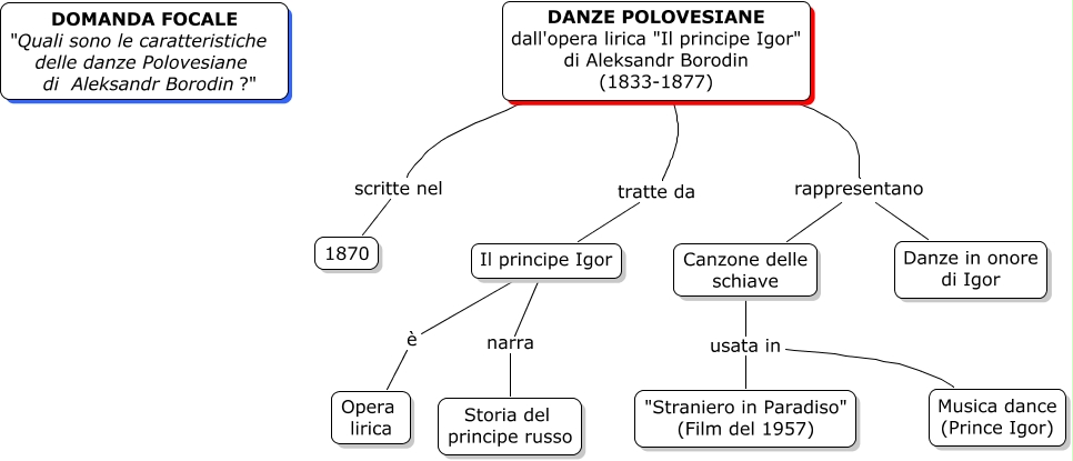 Questa Cmap, creata con IHMC CmapTools, contiene informazioni relative a: 10 Danze Polovesiane (A. Borodin), DANZE POLOVESIANE dall'opera lirica "Il principe Igor" di Aleksandr Borodin (1833-1877) rappresentano Canzone delle schiave, DANZE POLOVESIANE dall'opera lirica "Il principe Igor" di Aleksandr Borodin (1833-1877) scritte nel 1870, Il principe Igor è Opera lirica, DANZE POLOVESIANE dall'opera lirica "Il principe Igor" di Aleksandr Borodin (1833-1877) rappresentano Danze in onore di Igor, DANZE POLOVESIANE dall'opera lirica "Il principe Igor" di Aleksandr Borodin (1833-1877) tratte da Il principe Igor, Canzone delle schiave usata in Musica dance (Prince Igor), Il principe Igor narra Storia del principe russo, Canzone delle schiave usata in "Straniero in Paradiso" (Film del 1957)