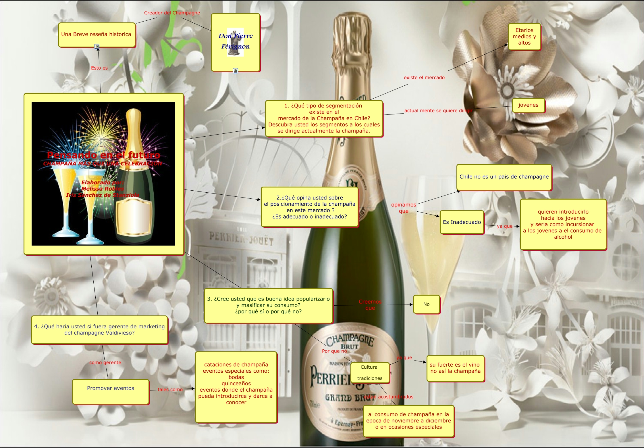 Este Cmap, tiene información relacionada con: Pensando en el futuro, Una Breve reseña historica Creador del Champagne Don Pierre Pérignon, 1. ¿Qué tipo de segmentación existe en el mercado de la Champaña en Chile? Descubra usted los segmentos a los cuales se dirige actualmente la champaña. existe el mercado Etarios medios y altos, Cultura tradiciones ya que su fuerte es el vino no así la champaña, 1. ¿Qué tipo de segmentación existe en el mercado de la Champaña en Chile? Descubra usted los segmentos a los cuales se dirige actualmente la champaña. actual mente se quiere dirigir ????, Es Inadecuado ya que quieren introducirlo hacia los jovenes y seria como incursionar a los jovenes a el consumo de alcohol, Pensando en el futuro CHAMPAÑA MÁS QUE UNA CELEBRACIÓN Elaborado por: Melissa Robles Iris Sánchez de Stanziola Esto es Una Breve reseña historica, 2.¿Qué opina usted sobre el posicionamiento de la champaña en este mercado ? ¿Es adecuado o inadecuado? opinamos que Chile no es un pais de champagne, Pensando en el futuro CHAMPAÑA MÁS QUE UNA CELEBRACIÓN Elaborado por: Melissa Robles Iris Sánchez de Stanziola ???? 1. ¿Qué tipo de segmentación existe en el mercado de la Champaña en Chile? Descubra usted los segmentos a los cuales se dirige actualmente la champaña., Pensando en el futuro CHAMPAÑA MÁS QUE UNA CELEBRACIÓN Elaborado por: Melissa Robles Iris Sánchez de Stanziola ???? 3. ¿Cree usted que es buena idea popularizarlo y masificar su consumo? ¿por qué sí o por qué no?, Pensando en el futuro CHAMPAÑA MÁS QUE UNA CELEBRACIÓN Elaborado por: Melissa Robles Iris Sánchez de Stanziola ???? 2.¿Qué opina usted sobre el posicionamiento de la champaña en este mercado ? ¿Es adecuado o inadecuado?, Cultura tradiciones estan acostumbrados al consumo de champaña en la epoca de noviembre a diciembre o en ocasiones especiales, 2.¿Qué opina usted sobre el posicionamiento de la champaña en este mercado ? ¿Es adecuado o inadecuado? opinamos que Es Inadecuado, Pensando en el futuro CHAMPAÑA MÁS QUE UNA CELEBRACIÓN Elaborado por: Melissa Robles Iris Sánchez de Stanziola ???? 4. ¿Qué haría usted si fuera gerente de marketing del champagne Valdivieso?, Promover eventos tales como cataciones de champaña eventos especiales como: bodas quinceaños eventos donde el champaña pueda introducirce y darce a conocer, 4. ¿Qué haría usted si fuera gerente de marketing del champagne Valdivieso? como gerente Promover eventos, 3. ¿Cree usted que es buena idea popularizarlo y masificar su consumo? ¿por qué sí o por qué no? Por que no Cultura tradiciones, 3. ¿Cree usted que es buena idea popularizarlo y masificar su consumo? ¿por qué sí o por qué no? Creemos que No