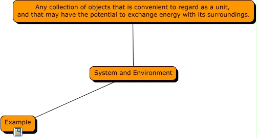 This Concept Map, created with IHMC CmapTools, has information related to: System and Environment, System and Environment ???? Any collection of objects that is convenient to regard as a unit, and that may have the potential to exchange energy with its surroundings., System and Environment ???? Example, System and Environment ???? Example, System and Environment ???? Example