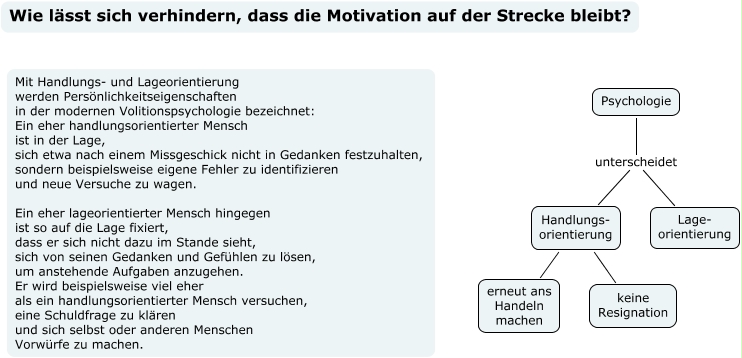 Dieses mit IHMC CmapTools erstellte CMap hat Informationen bezüglich: Wie lässt sich verhindern dass die Motivation auf der Strecke bleibt, Handlungs- orientierung erneut ans Handeln machen, Handlungs- orientierung keine Resignation, Psychologie unterscheidet Lage- orientierung, Psychologie unterscheidet Handlungs- orientierung