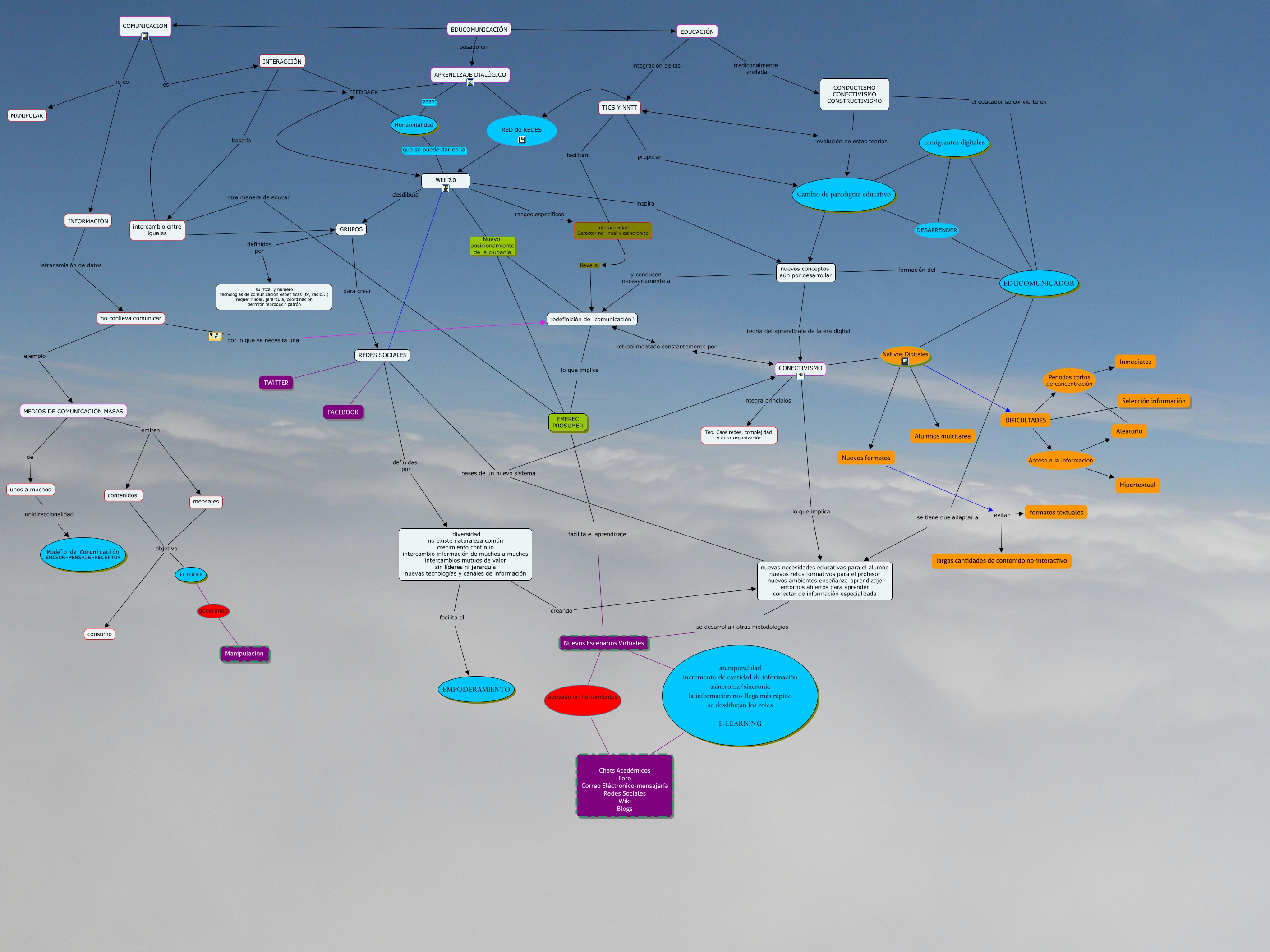 Este Cmap, tiene información relacionada con: prueba 3 javier, CONECTIVISMO retroalimentado constantemente por redefinición de "comunicación", DIFICULTADES Acceso a la información Aleatorio, CONDUCTISMO CONECTIVISMO CONSTRUCTIVISMO el educador se convierte en EDUCOMUNICADOR, EMEREC PROSUMER facilita el aprendizaje Nuevos Escenarios Virtuales, mensajes objetivo EL PODER, TICS Y NNTT facilitan Interactividad Caracter no lineal y asincrónico, Nuevos formatos evitan formatos textuales, INTERACCIÓN basada intercambio entre iguales, WEB 2.0 ???? REDES SOCIALES, MEDIOS DE COMUNICACIÓN MASAS de unos a muchos, INFORMACIÓN retransmisión de datos no conlleva comunicar, WEB 2.0 inspira nuevos conceptos aún por desarrollar, DIFICULTADES ???? Selección información, nuevos conceptos aún por desarrollar formación del EDUCOMUNICADOR, GRUPOS definidos por su ntza. y número tecnologías de comunicación específicas (tv, radio...) requerir líder, jerarquía, coordinación permitir reproducir patrón, TICS Y NNTT RED de REDES WEB 2.0, EDUCACIÓN tradiconalmente anclada CONDUCTISMO CONECTIVISMO CONSTRUCTIVISMO, nuevas necesidades educativas para el alumno nuevos retos formativos para el profesor nuevos ambientes enseñanza-aprendizaje entornos abiertos para aprender conectar de información especializada bases de un nuevo sistema CONECTIVISMO, EDUCOMUNICADOR Nativos Digitales Nuevos formatos, WEB 2.0 Nuevo posicionamiento de la ciudania EMEREC PROSUMER