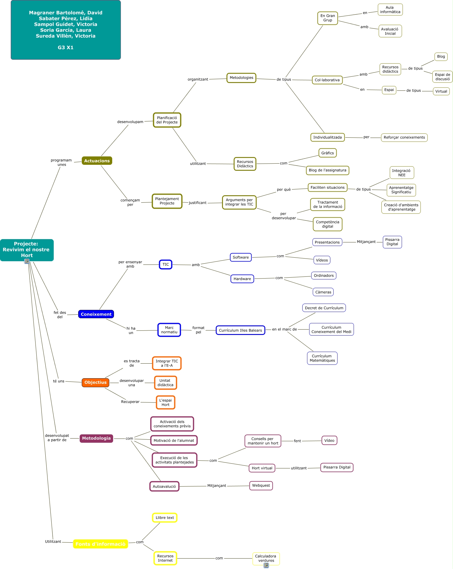 Este Cmap, tiene información relacionada con: Projecte_Hort.cmap, Presentacions Mitjançant Pissarra Digital, Faciliten situacions de tipus Integració NEE, Col·laborativa en Espai, Coneixement hi ha un Marc normatiu, Objectius es tracta de Integrar TIC a l'E-A, En Gran Grup en Aula informàtica, Consells per mantenir un hort fent Vídeo, Projecte: Revivim el nostre Hort programam unes Actuacions, Recursos Didàctics com Gràfics, En Gran Grup amb Avaluació Inicial, Fonts d'informació com Llibre text, Faciliten situacions de tipus Creació d'ambients d'aprenentatge, Projecte: Revivim el nostre Hort té uns Objectius, Faciliten situacions de tipus Aprenentatge Significatiu, Metodologies de tipus Col·laborativa, Col·laborativa amb Recursos didàctics, Projecte: Revivim el nostre Hort desenvolupat a partir de Metodologia, Activació dels coneixements prèvis com Motivació de l'alumnat, Recursos didàctics de tipus Espai de discusió, Activació dels coneixements prèvis com Metodologia
