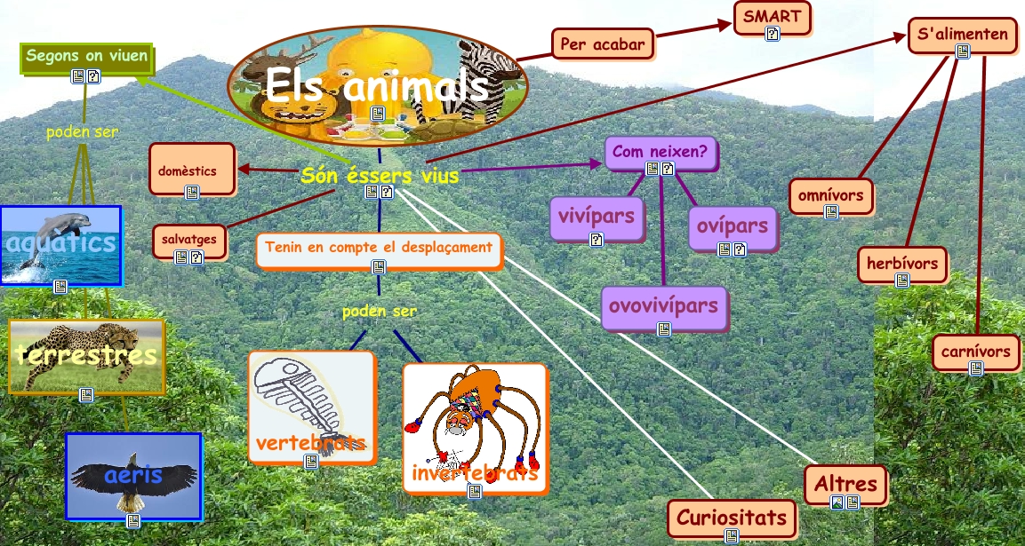 Este Cmap, tiene información relacionada con: animals, Els animals Són éssers vius Com neixen?, carnívors ???? S'alimenten, Com neixen? ???? ovovivípars, Els animals ???? Per acabar, poden ser vertebrats, Els animals Són éssers vius Tenin en compte el desplaçament, Com neixen? ???? vivípars, Els animals Són éssers vius domèstics, poden ser ???? invertebrats, Els animals Són éssers vius Curiositats, Els animals Són éssers vius Segons on viuen, Els animals ???? SMART, Segons on viuen poden ser terrestres, Tenin en compte el desplaçament poden ser, Els animals Són éssers vius Altres, Com neixen? ???? ovípars, Els animals Són éssers vius salvatges, Segons on viuen poden ser aquàtics, Segons on viuen poden ser aeris, Els animals Són éssers vius S'alimenten
