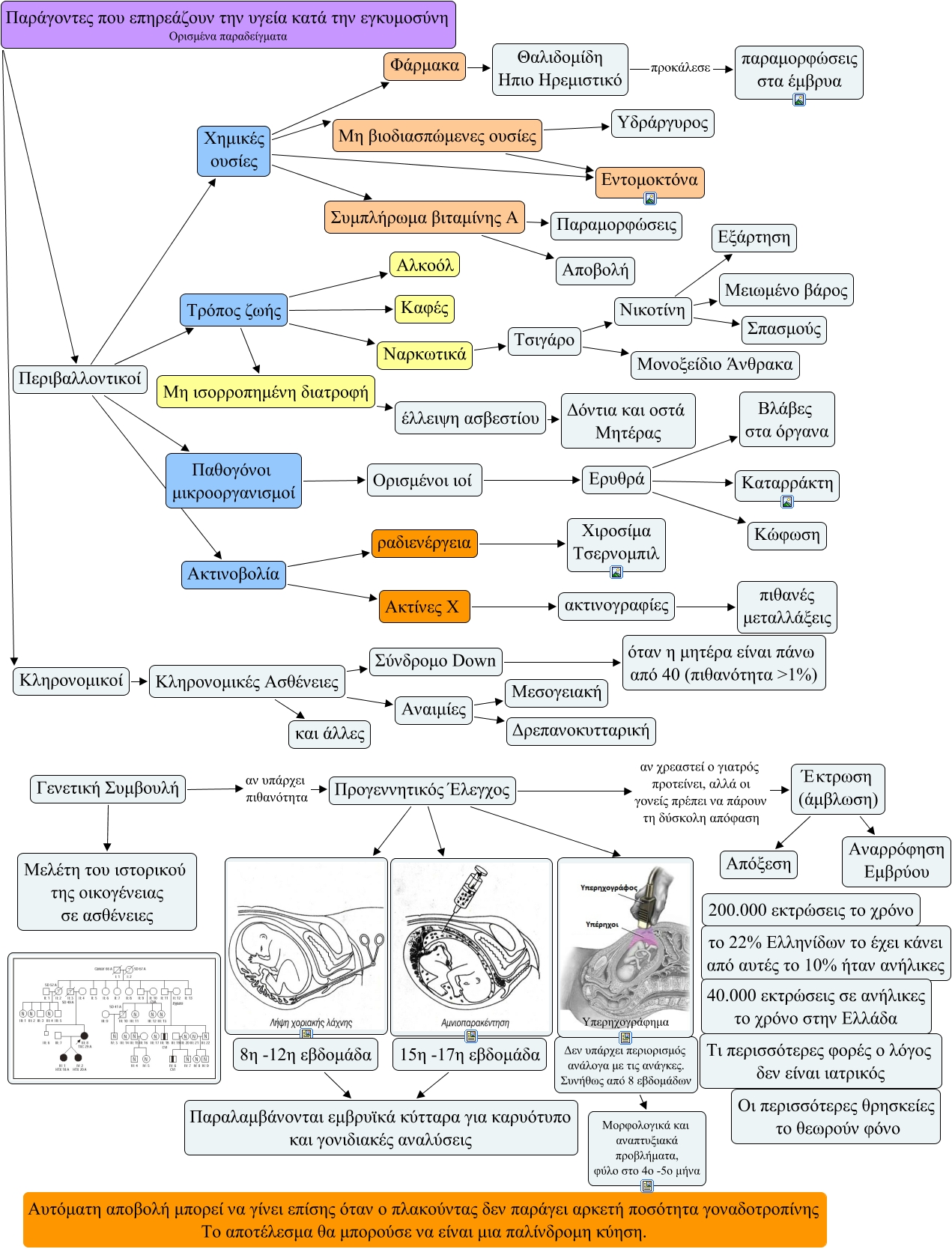This Concept Map, created with IHMC CmapTools, has information related to: Pregnancy health, Προγεννητικός Έλεγχος Υπερηχογράφημα, Μη βιοδιασπώμενες ουσίες Εντομοκτόνα, Νικοτίνη Εξάρτηση, Ορισμένοι ιοί Ερυθρά, Ακτίνες Χ ακτινογραφίες, Κληρονομικές Ασθένειες Αναιμίες, 15η -17η εβδομάδα Παραλαμβάνονται εμβρυϊκά κύτταρα για καρυότυπο και γονιδιακές αναλύσεις, ακτινογραφίες πιθανές μεταλλάξεις, Ερυθρά Κώφωση, Τρόπος ζωής Καφές, Τσιγάρο Νικοτίνη, Δεν υπάρχει περιορισμός ανάλογα με τις ανάγκες. Συνήθως από 8 εβδομάδων Μορφολογικά και αναπτυξιακά προβλήματα, φύλο στο 4ο -5ο μήνα, Προγεννητικός Έλεγχος, έλλειψη ασβεστίου Δόντια και οστά Μητέρας, Κληρονομικές Ασθένειες Σύνδρομο Down, Τρόπος ζωής Μη ισορροπημένη διατροφή, Προγεννητικός Έλεγχος αν χρεαστεί ο γιατρός προτείνει, αλλά οι γονείς πρέπει να πάρουν τη δύσκολη απόφαση Έκτρωση (άμβλωση), Μη ισορροπημένη διατροφή έλλειψη ασβεστίου, Ναρκωτικά Τσιγάρο, Γενετική Συμβουλή Μελέτη του ιστορικού της οικογένειας σε ασθένειες