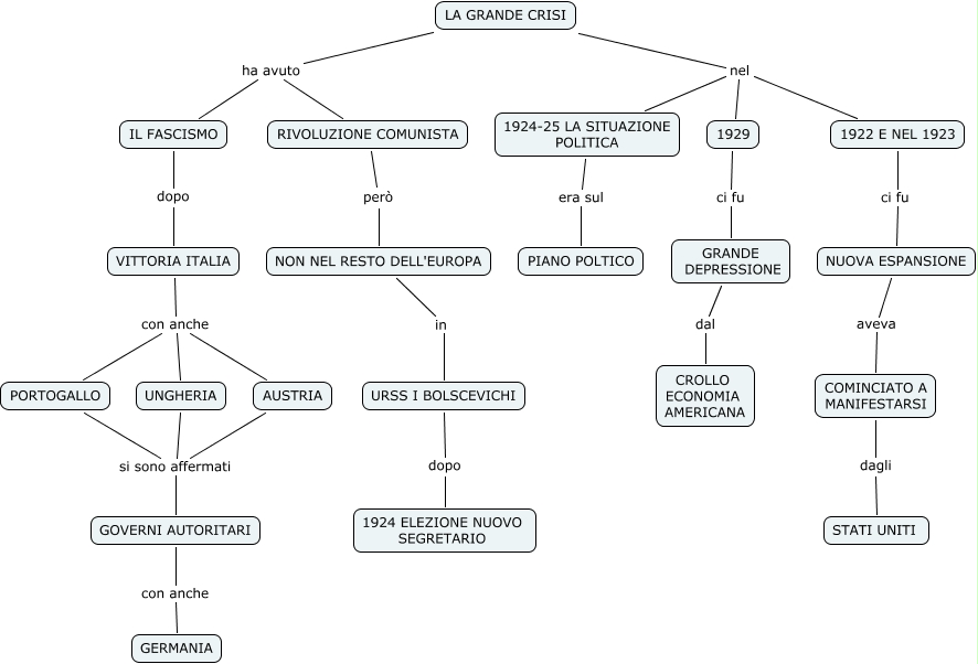 Questa Cmap, creata con IHMC CmapTools, contiene informazioni relative a: cap. 1 modulo 4, 1929 ci fu GRANDE DEPRESSIONE, LA GRANDE CRISI nel 1929, LA GRANDE CRISI ha avuto IL FASCISMO, AUSTRIA si sono affermati GOVERNI AUTORITARI, LA GRANDE CRISI ha avuto RIVOLUZIONE COMUNISTA, UNGHERIA si sono affermati GOVERNI AUTORITARI, LA GRANDE CRISI nel 1922 E NEL 1923, LA GRANDE CRISI nel 1924-25 LA SITUAZIONE POLITICA, URSS I BOLSCEVICHI dopo 1924 ELEZIONE NUOVO SEGRETARIO, 1922 E NEL 1923 ci fu NUOVA ESPANSIONE, COMINCIATO A MANIFESTARSI dagli STATI UNITI, PORTOGALLO si sono affermati GOVERNI AUTORITARI, IL FASCISMO dopo VITTORIA ITALIA, VITTORIA ITALIA con anche PORTOGALLO, VITTORIA ITALIA con anche AUSTRIA, VITTORIA ITALIA con anche UNGHERIA, NUOVA ESPANSIONE aveva COMINCIATO A MANIFESTARSI, 1924-25 LA SITUAZIONE POLITICA era sul PIANO POLTICO, NON NEL RESTO DELL'EUROPA in URSS I BOLSCEVICHI, GOVERNI AUTORITARI con anche GERMANIA