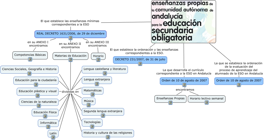 Este Cmap, tiene información relacionada con: Enseñanzas propias de la comunidad autónoma de Andalucia, REAL DECRETO 1631/2006, de 29 de diciembre en su ANEXO II encontramos Materias de Educación, REAL DECRETO 1631/2006, de 29 de diciembre en su ANEXO I encontramos Competencias Básicas, Materias de Educación divididas en Informática, Materias de Educación divididas en Lengua extranjera, Materias de Educación divididas en Tecnologías, REAL DECRETO 1631/2006, de 29 de diciembre en su ANEXO III encontramos Horario, Orden de 10 de agosto de 2007 encontramos Enseñanzas Propias, El que establece la ordenación y las enseñanzas correspondientes a la ESO. DECRETO 231/2007, de 31 de julio, Materias de Educación divididas en Ciencias de la naturaleza, Materias de Educación divididas en Educación para la ciudadanía, Materias de Educación divididas en Educación plástica y visual, El que establece las enseñanzas mínimas correspondientes a la ESO REAL DECRETO 1631/2006, de 29 de diciembre, La que desarrolla el currículo correspondiente a la ESO en Andalucía Orden de 10 de agosto de 2007, Materias de Educación divididas en Educación Física, Materias de Educación divididas en Historia y cultura de las religiones, Materias de Educación divididas en Lengua castellana y literatura, Materias de Educación divididas en Segunda lengua extranjera, Materias de Educación divididas en Latín, La que se establece la ordenación de la evaluación del proceso de aprendizaje del alumnado de la ESO en Andalucía Orden de 10 de agosto de 2007, Materias de Educación divididas en Música