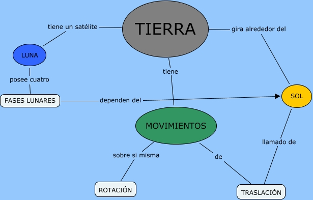 Este Cmap, tiene información relacionada con: SEGUNDO, MOVIMIENTOS tiene TIERRA, LUNA tiene un satélite TIERRA, SOL llamado de TRASLACIÓN, LUNA posee cuatro FASES LUNARES, MOVIMIENTOS de TRASLACIÓN, ROTACIÓN sobre si misma MOVIMIENTOS, FASES LUNARES dependen del SOL, SOL gira alrededor del TIERRA
