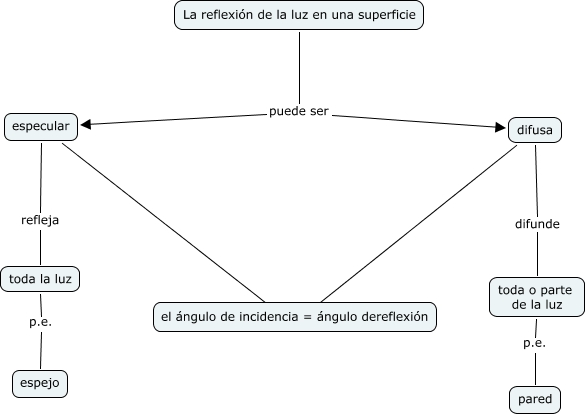 Este Cmap, tiene información relacionada con: La Reflexión sugerido por Javier S, toda o parte de la luz p.e. pared, difusa no cumple el ángulo de incidencia = ángulo dereflexión, especular refleja toda la luz, difusa difunde toda o parte de la luz, La reflexión de la luz en una superficie puede ser difusa, especular cumple el ángulo de incidencia = ángulo dereflexión, toda la luz p.e. espejo, La reflexión de la luz en una superficie puede ser especular