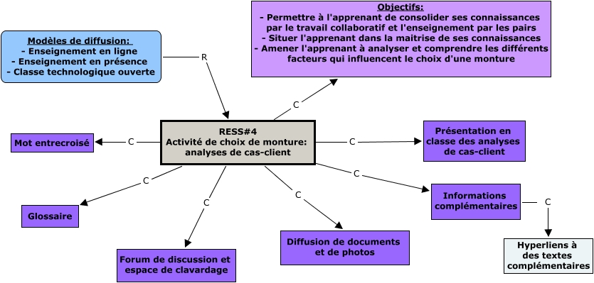 Cette carte de concepts créée avec IHMC CmapTools traite de: UA2-OA4-RESS4, RESS#4 Activité de choix de monture: analyses de cas-client C Mot entrecroisé, RESS#4 Activité de choix de monture: analyses de cas-client C Informations complémentaires, Modèles de diffusion: - Enseignement en ligne - Enseignement en présence - Classe technologique ouverte R RESS#4 Activité de choix de monture: analyses de cas-client, RESS#4 Activité de choix de monture: analyses de cas-client C Forum de discussion et espace de clavardage, RESS#4 Activité de choix de monture: analyses de cas-client C Présentation en classe des analyses de cas-client, Informations complémentaires C Hyperliens à des textes complémentaires, RESS#4 Activité de choix de monture: analyses de cas-client C Glossaire, RESS#4 Activité de choix de monture: analyses de cas-client C Objectifs: - Permettre à l'apprenant de consolider ses connaissances par le travail collaboratif et l'enseignement par les pairs - Situer l'apprenant dans la maitrise de ses connaissances - Amener l'apprenant à analyser et comprendre les différents facteurs qui influencent le choix d'une monture, RESS#4 Activité de choix de monture: analyses de cas-client C Diffusion de documents et de photos