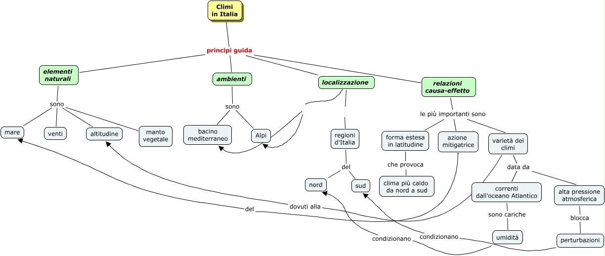Questa Cmap, creata con IHMC CmapTools, contiene informazioni relative a: i climi in italia, elementi naturali sono manto vegetale, ambienti sono bacino mediterraneo, forma estesa in latitudine che provoca clima più caldo da nord a sud, elementi naturali sono altitudine, relazioni causa-effetto le più importanti sono forma estesa in latitudine, relazioni causa-effetto le più importanti sono varietà dei climi, Climi in Italia principi guida relazioni causa-effetto, varietà dei climi data da alta pressione atmosferica, Climi in Italia principi guida localizzazione, varietà dei climi data da correnti dall'oceano Atlantico, Climi in Italia principi guida ambienti, localizzazione bacino mediterraneo, Climi in Italia principi guida elementi naturali, regioni d'Italia del sud, azione mitigatrice del mare, umidità condizionano nord, localizzazione regioni d'Italia, elementi naturali sono mare, relazioni causa-effetto le più importanti sono azione mitigatrice, correnti dall'oceano Atlantico sono cariche umidità
