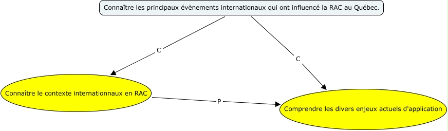 Cette carte de concepts créée avec IHMC CmapTools traite de: Internationale, Connaître les principaux évènements internationaux qui ont influencé la RAC au Québec. C Connaître le contexte internationnaux en RAC, Connaître le contexte internationnaux en RAC P Comprendre les divers enjeux actuels d'application, Connaître les principaux évènements internationaux qui ont influencé la RAC au Québec. C Comprendre les divers enjeux actuels d'application