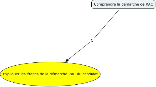 Cette carte de concepts créée avec IHMC CmapTools traite de: démarche rac, Comprendre la démarche de RAC C Expliquer les étapes de la démarche RAC du candidat