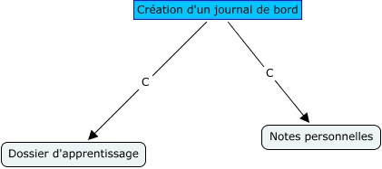 Cette carte de concepts créée avec IHMC CmapTools traite de: Journal de bord, Création d'un journal de bord C Dossier d'apprentissage, Création d'un journal de bord C Notes personnelles