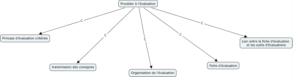Cette carte de concepts créée avec IHMC CmapTools traite de: evaluation, Procéder à l'évaluation C Fiche d'évaluation, Procéder à l'évaluation C transmission des consignes, Procéder à l'évaluation C Organisation de l'évaluation, Procéder à l'évaluation C Lien entre la fiche d'évaluation et les outils d'évaluations, Procéder à l'évaluation C Principe d'évaluation critériés